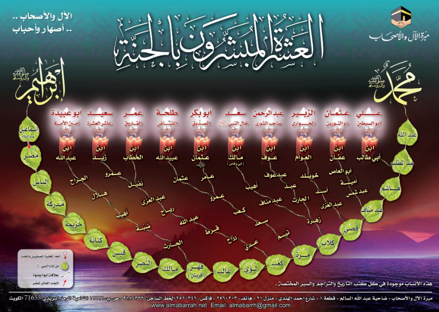 بوستر يحتوي على رسم توضيحي يبين أنساب العشرة المبشرين بالجنة.
