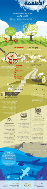 إنفوجراف يحتوي على معلومات عن الأطعمة في الإسلام؛ مبينًا ما هو المباح منها، وما هو المحرم؛ كما يتطرق إلى توضيح أحكام أكل الحيوانات، وما يرتبط بها من ذكاة شرعية أو صيد.