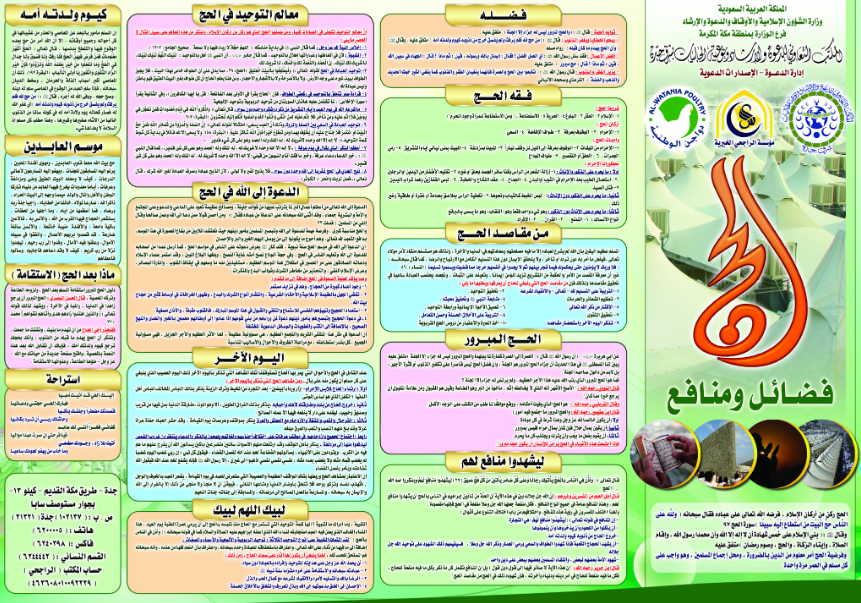 الحج فضائل ومنافع : بوستر اشتمل على بعض فضائل الحج، وبعض مقاصده، وبعض المسائل المتعلقة بالحج.