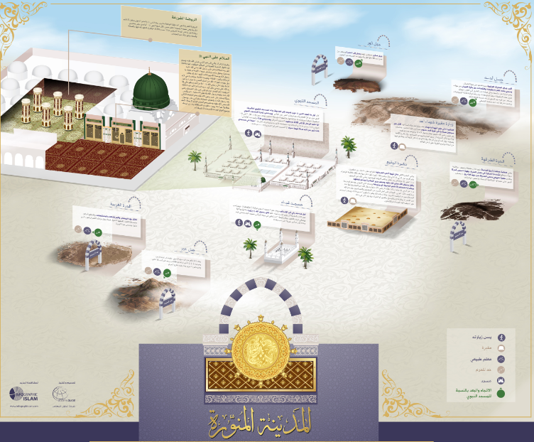 إنفوجراف يحتوي على معلومات عن المسجد النبوي، والمدينة المنورة وأبرز معالمها.