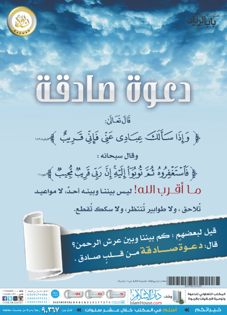 قيل لبعضهم: كم بيننا وبين عرش الرحمن؟ قال: دعوة صادقة من قلب صادق.