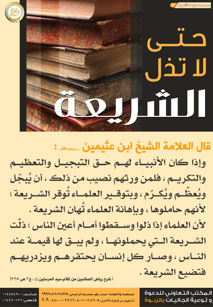 تصميم يحتوي على كلمة للشيخ ابن عثيمين - رحمه الله - يبين فيها أهميه توقير العلماء.