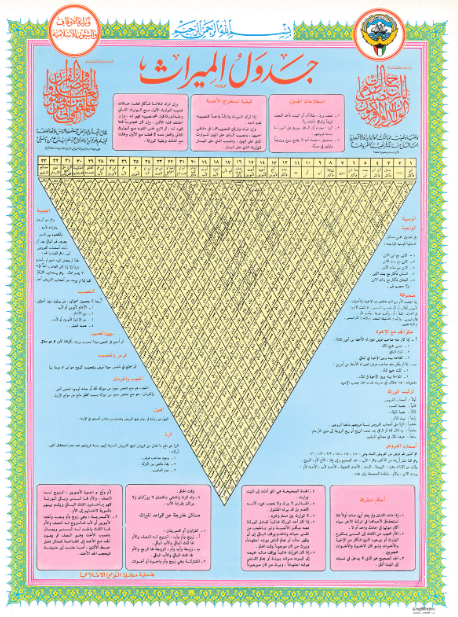 بوستر متميز من إصدار مجلة الوعي الإسلامي، يحتوي على رسم توضيحي، يبين أحكام الفرائض والمواريث، بأسلوب سهل مختصر لتيسير المواريث على طلبة العلم.