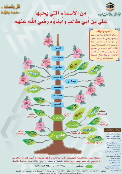 بوستر يحتوي على بعض الأسماء التي يحبها علي بن أبي طالب وأبناؤه - رضي الله عنهم - وهي تبين أن الحب والوفاء هما اللذان دفعا عليًا وأبناؤه وذريتهم ليسموا أبنائهم وبناتهم بهذه الأسماء، إذ أن الإنسان لا يسمي فلذات كبده بأسماء من يبغضهم أو يعاديهم، بل يختار لهم أفضل الأسماء وأكرمها أصلا، وأنسبها تسمية، وأحبها إلى قلبه.