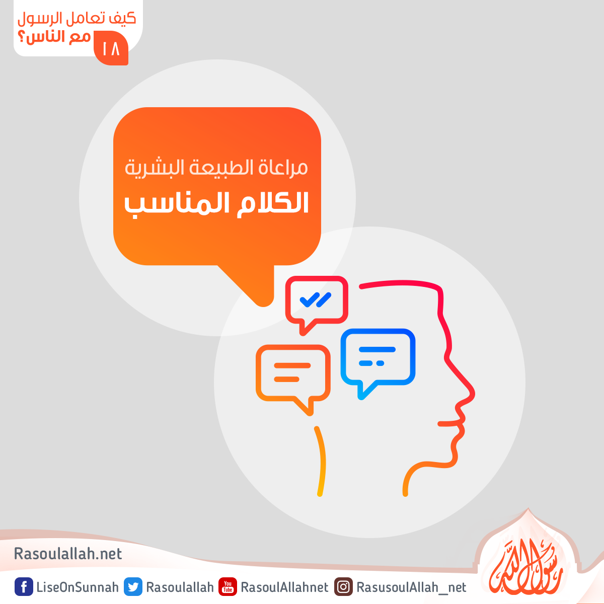 يعلِّمنا الرسولُ القدوة أنَّ لكل كلام وقتًا ومناسبة، وليس أيُّ كلام يصلح في أي وقت، ويوضح لنا من خلال مواقفه العملية الراقيةِ كيف نكون رُحَماء بالناس؛ من خلال الكلمة الطيبة التي تراعي مشاعرَهم، وتقدِّر احتياجاتهم، فنكون لهم سندًا وعونًا في صحراء الحياة القاسية.