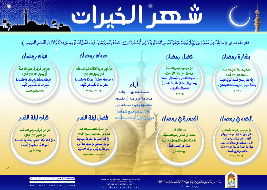 عدة تصاميم لبوستر شهر الخيرات، والذي يحتوي على بعض فضائل شهر رمضان.