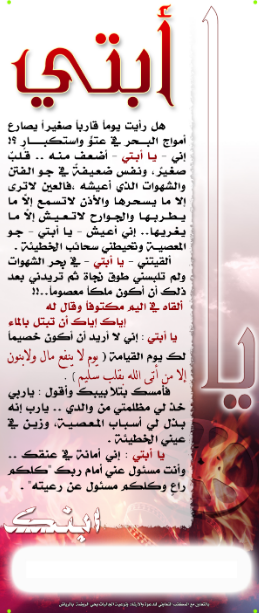 بوستر يتضمن رسالة من ابن لأبيه، يحثه فيها على عدم تركه للشهوات، وأنه أمانة في عنقه.