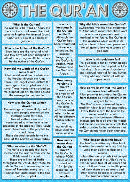 This is a brief article which explains the meanings and the definitions of the Quran. It also takes a look at some of the scientific facts mentioned in the Quran.