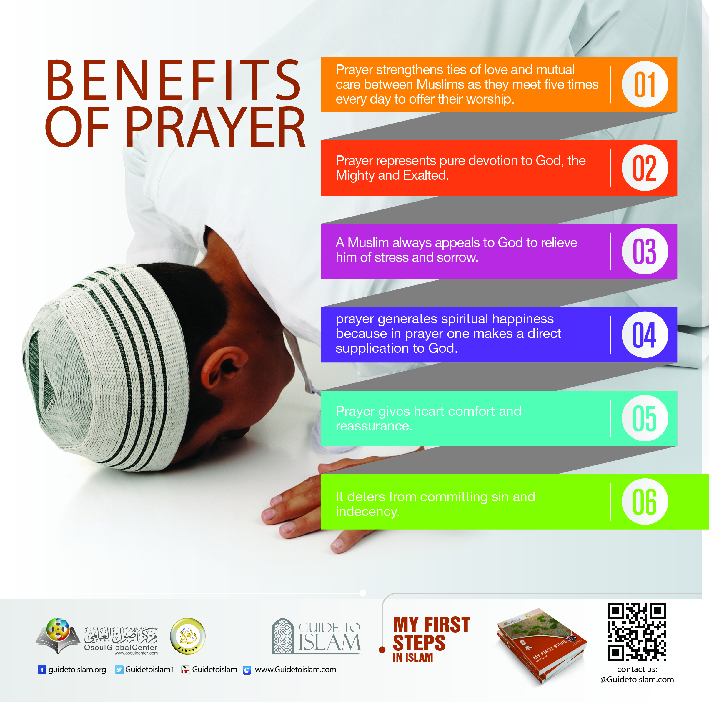 Prayer strengthens ties of love and mutual care between Muslims as they meet five times every day to offer their worship.