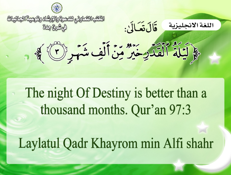 This is a poster contains a translation of Allah’s saying, "The night of Destiny is better than a thousand months."