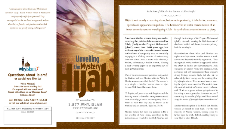 This pamphlet handles the issue of hijab through some points as: Hijab is obedience, hijab is modesty, hijab is protection, hijab is dignity, hijab is respect and hijab is confidence. It also mentions some issues about hijab in the bible.