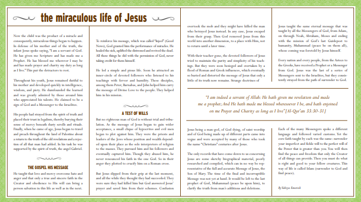 This pamphlet tells us about the prestige of the Prophet Jesus as mentioned in the Quran and the Sunnah.